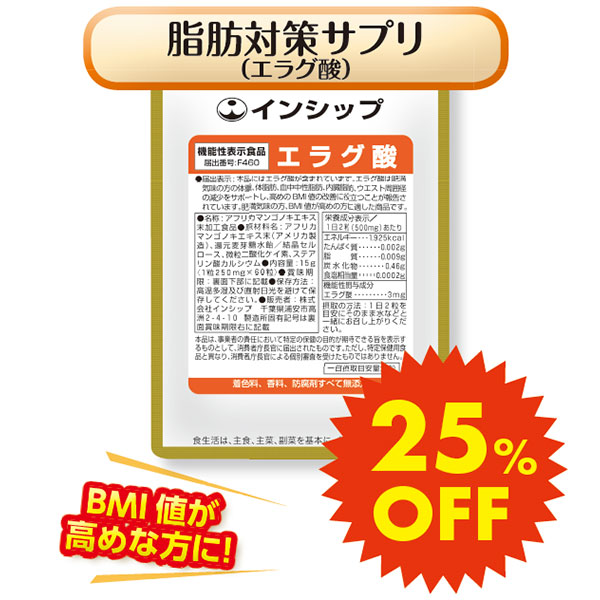 【25%OFF】脂肪対策サプリ(エラグ酸)